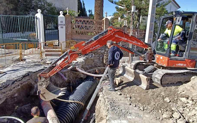 According to Salobreña Town Hall, the sinkhole at the end of the main drag in Lobres is being sorted, but normal traffic flow has only been partially restored.