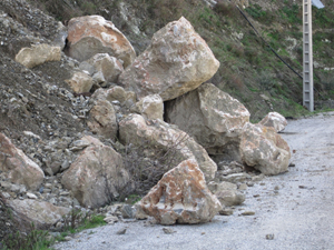 It’s pretty much all downhill from here, No pun intended, but we have mudslides all over. Reports are flooding in (groan) of walls subsiding, land sliding down hills, so-called dry walls slipping, etc., etc. There have been problems ranging from La Caleta, where a local car park has been threatened by stones falling from 30 metres and crushing cars below, to Molvízar, where huge rocks fell from a private property wall to block the Coto 200.