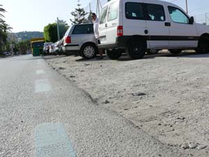 Soooo, why is it that drivers have to risk losing their plastic bumpers when they descend from the tarmac road to the dirt parking area? Why has the Town Hall not demanded that this work be carried out, because you can bet your grandmother’s false teeth that they would be on you in a flash if it were the terrace of your bar that was deficient?