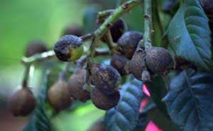 The dreaded la negra (Fusicladium eryobotryaea) has caused large quantities of nispolas from this harvest to be thrown out. The yo-yoing of temperatures have wrought havoc with the finicky fruit, which even if you look at it funny, will immediately break out in black scabs. Fusicladium eryobotryaea