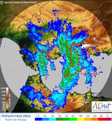 So, there you go, when somebody says, did you here about the tornado yesterday morning, tell them it was a downburst provoked by a squall line, and as they push you over a beer in admiration, add, “When a tornado goes by, atmospheric pressures drops drastically, where in the case of Salobreña it did exactly the opposite.