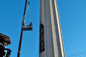 Emergency repair work began on the 17th of February but the scarcity of funds means that it is progressing slowly. And it is expensive because at least two high-reaching cranes are being used simultaneously.