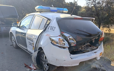 It seems that the elderly driver of the car that ran into the Guardia Civil patrol vehicle had been momentarily dazzled by the sun and had not seen the stationary patrol car. He was breathalysed which came back negative.