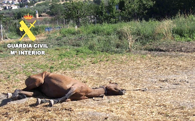 The officers alerted the veterinary surgeon belonging to the Oficina Comarcal Agraria (OCA) to give a report on the situation of the two horses and establish a possible cause of death, for the animal that had been dead for over twelve hours.