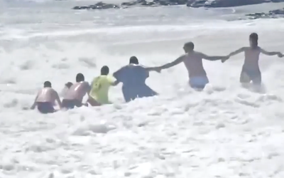Thanks to bathers forming a chain into the surf, they were able to save a child of six from being carried away by the current.